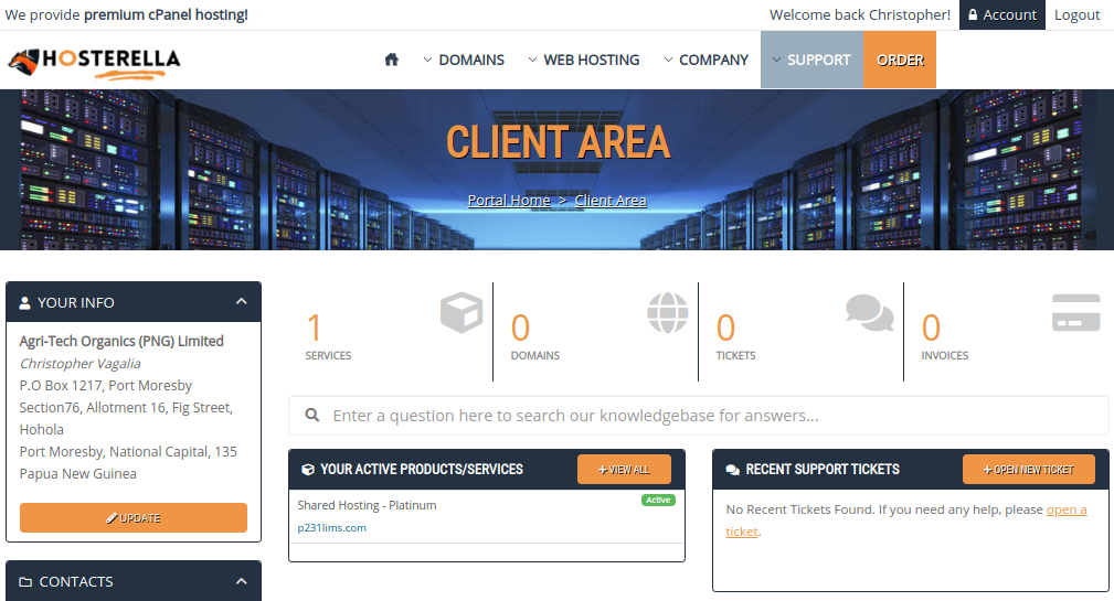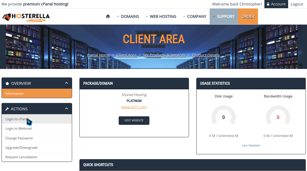 1) Login to your Hosterella.com account by accessing the Client Area https://www.hosterella.com/clientarea.php: