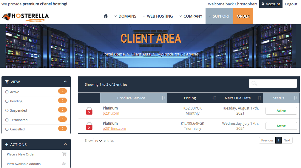 1) Login to your Hosterella.com account by accessing the Client Area https://www.hosterella.com/clientarea.php: